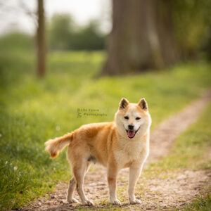 Bij ons was Kenza in het begin want ingetogen, maar intussen staat ze vrolijk te dansen als ze haar wandelaars ziet komen. Ze loopt mee in de groep kleine hondjes; ze gaat zelf snuffelen bij soortgenoten, maar kan het niet goed verdragen zelf besnuffeld te worden.. Mevrouw heeft dus wel wat streken 😉 Ze kan eventueel bij een andere hond; ze wandelt ook veel vlotter aan de lijn als ze mee kan lopen met een ander hondje, maar we zullen wel moeten testen of het klikt. Op katten reageert ze positief. Verder is het een brave Shiba die zich ook probleemloos laat oppakken. Je moet er wel rekening mee houden dat in huis leven, alleen blijven en zindelijk nieuw zullen zijn voor haar.