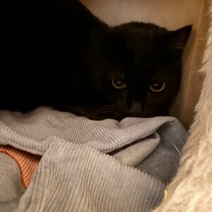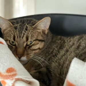 Bij ons is Chouchou wat afstandelijk. Ze is niet bang, maar zit ook niet te wachten op veel aaitjes. Ze is tolerant naar andere katten en komt graag buiten, dus een thuis waar ze ook op avontuur kan, past het best bij haar. 🐾💛