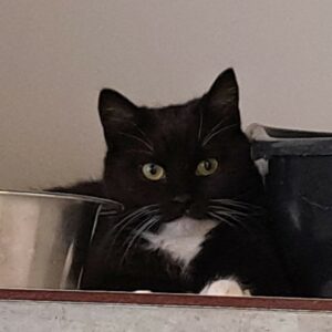Bij ons is Sacha een bang katje. Hij zal tijd nodig hebben bij zijn nieuwe thuis om zich aan te passen en zoekt dus geduldige adoptanten. Bij ons zit hij voorlopig altijd binnen. Hij reageert goed op de andere katjes.