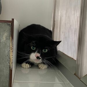 Bij ons is Aster een bang katje. Hij zal tijd nodig hebben bij zijn nieuwe thuis om zich aan te passen en zoekt dus geduldige adoptanten. Bij ons zit hij voorlopig altijd binnen. Hij reageert goed op de andere katjes.