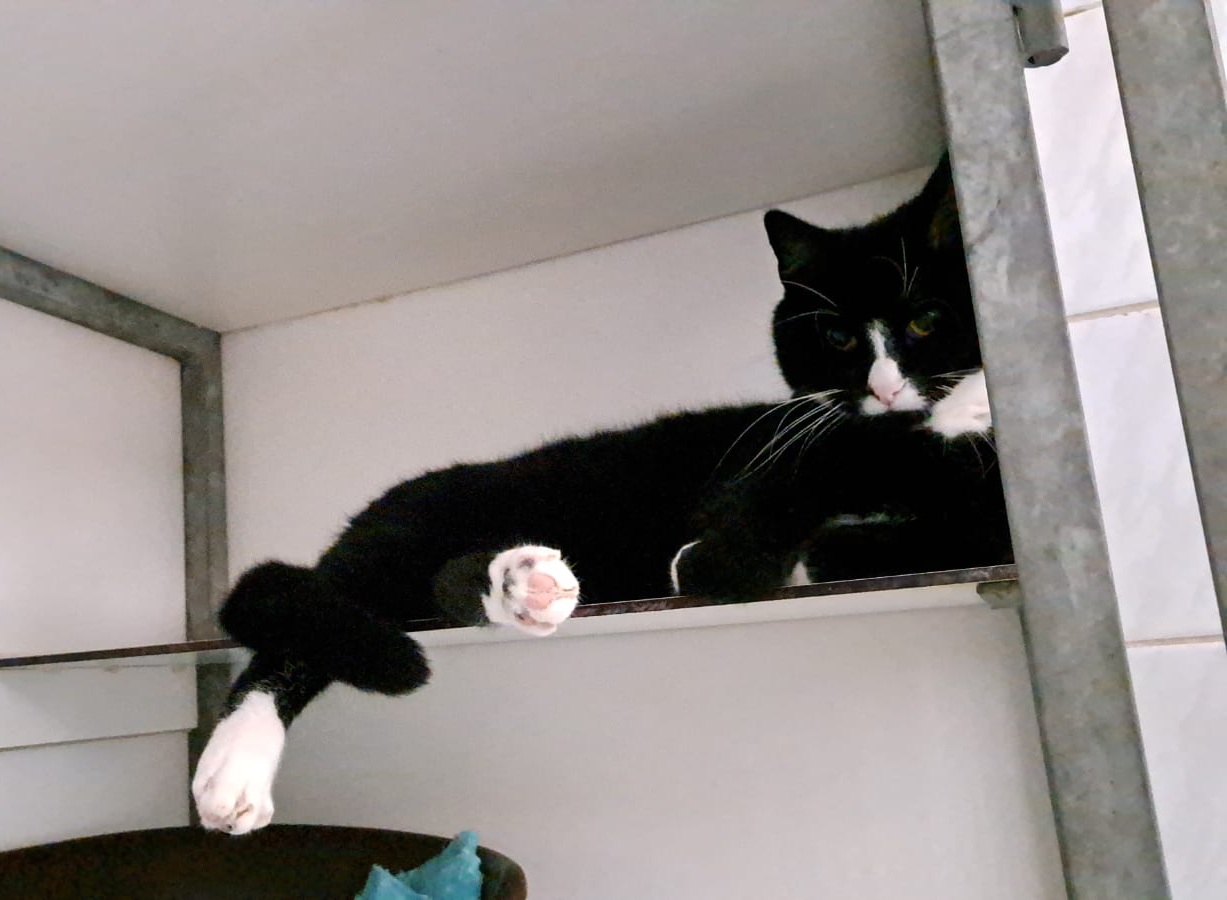 Bij ons is Boris heel erg over zijn toeren. Hij laat bijna niemand in zijn buurt komen, zowel mens als soortgenoot. Onze geduldige vrijwilliger Jelle begint wel stilletjes aan vooruitgang te boeken, maar Boris heeft dus echt nood aan een heel geduldige adoptant. We plaatsen hem niet bij andere katten.