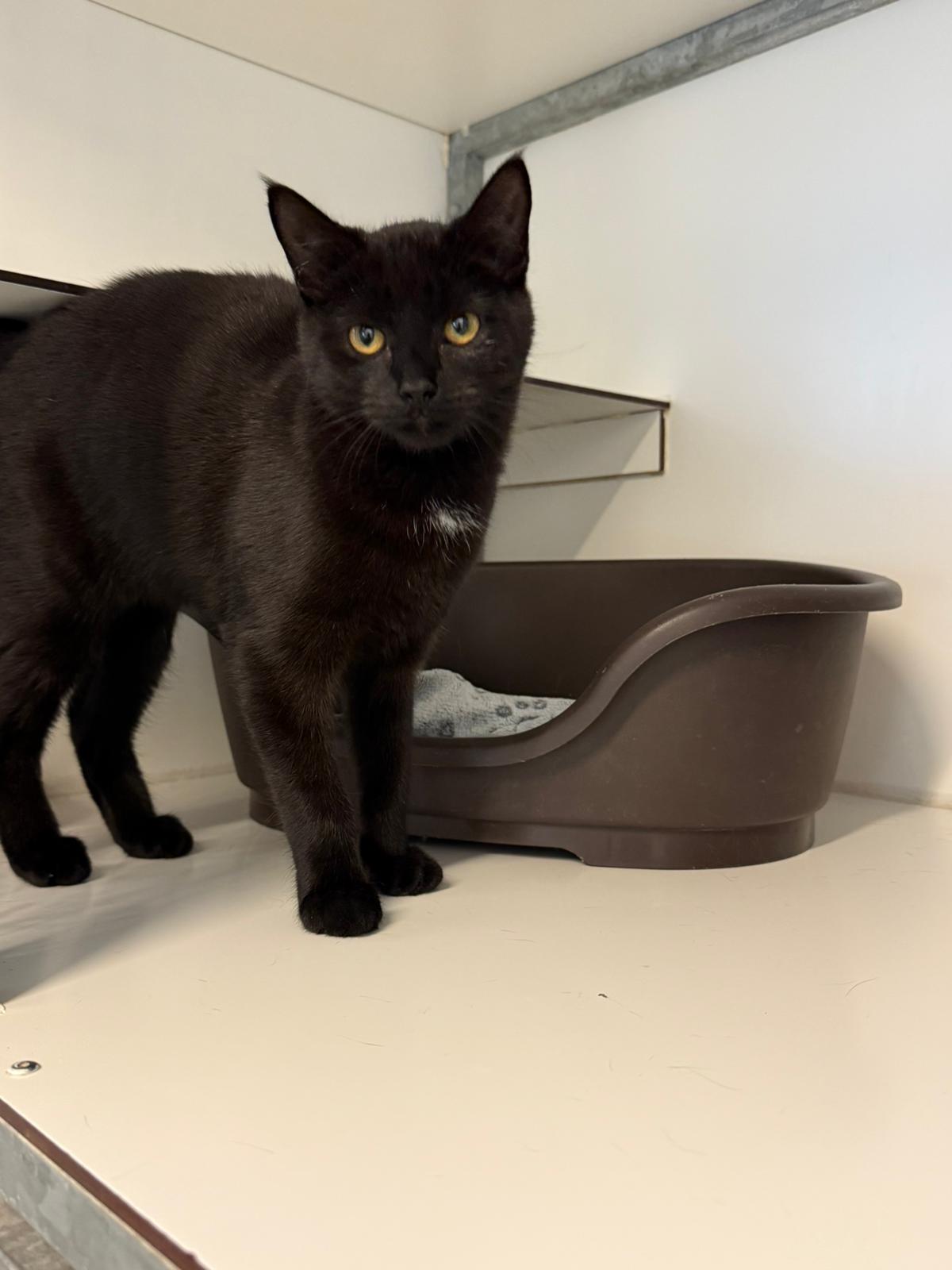 Nox werd als kitten bij ons geadopteerd, maar kon helaas niet goed aarden bij zijn adoptiegezin. Hij plaste in huis door de stress. Hij komt uit een gezin van 2 volwassenen en leefde op een appartement in de stad. Hij leefde samen met een ander katje en dat ging goed. Hij is lief naar zijn eigen mensen, maar heeft even nodig om je te leren kennen.